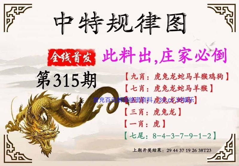 | 315期:阴阳两肖✠阳肖+龙马✠开:虎04准 |