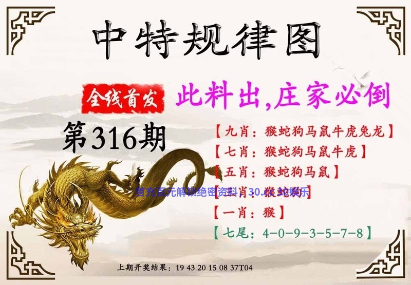 | 316期:阴阳两肖✠阴肖+牛虎✠开:马24准 |
